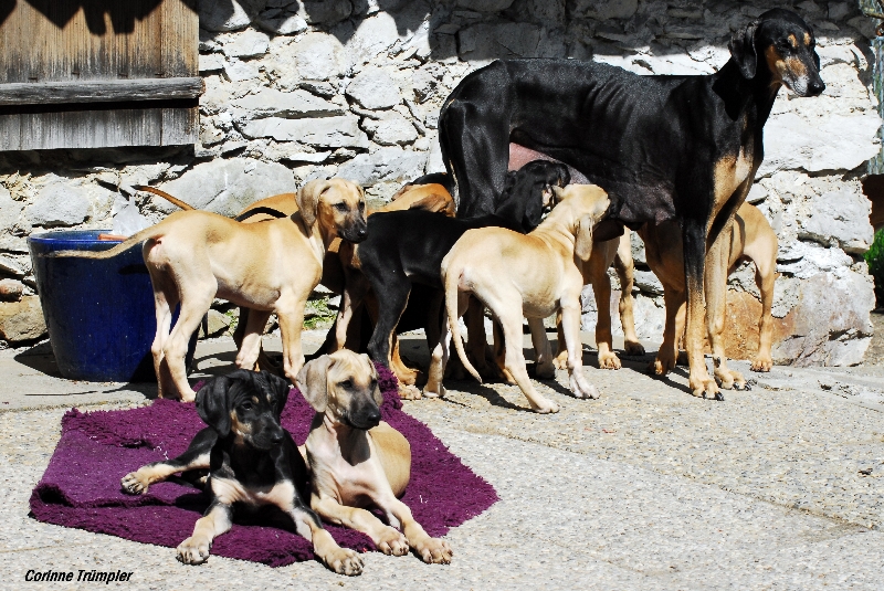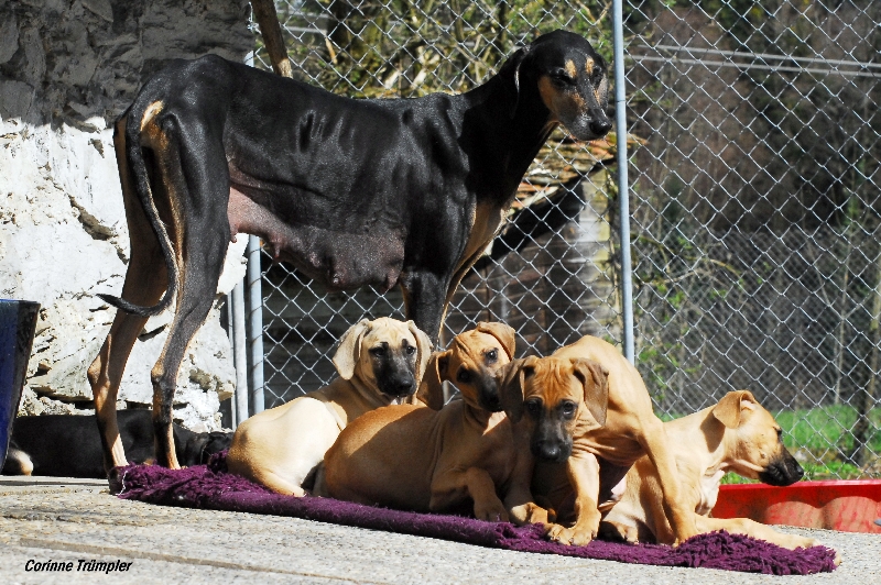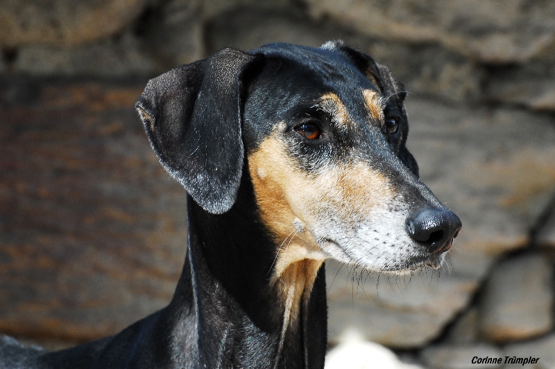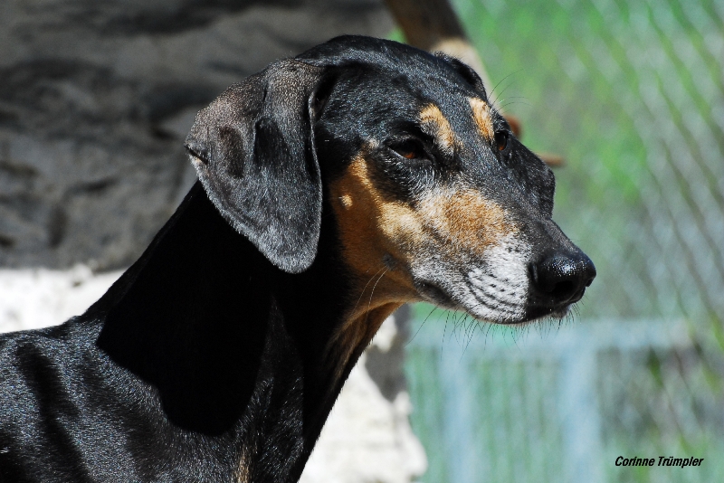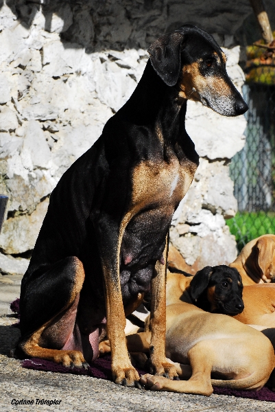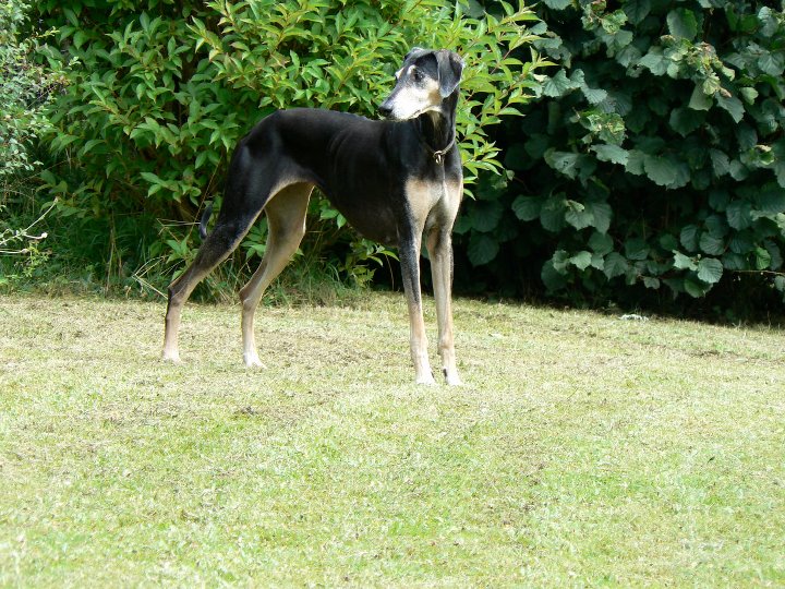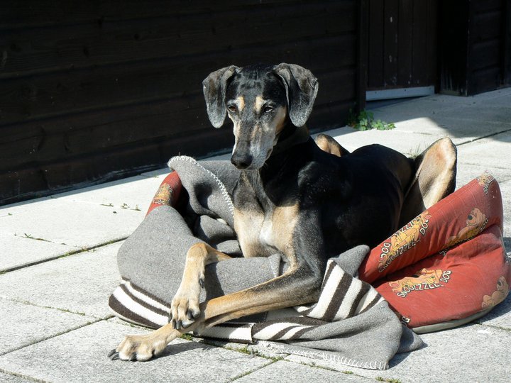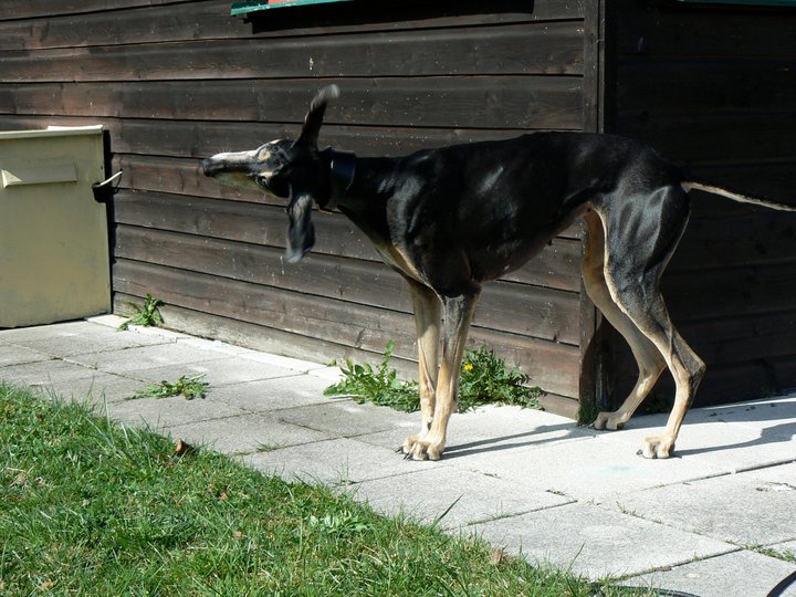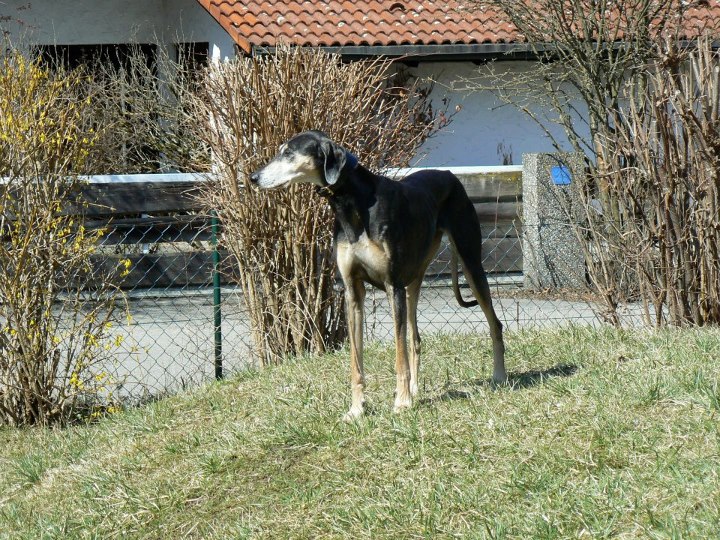 Sharooz wurde am 10.08.2003 in der Schweiz geboren. Es gab damals einen Wurf mit 7 schwarzbemantelten Sloughis. Vier Rüden und drei Hündinnen. Sie ist eine kräftige, ruhige, sanfte und dennoch sehr eigenwillige Hündin. Mit ihr habe ich im Laufe Ihrer Showkarriere den Schweizer Schönheits-Champion, den Deutschen Champion Club (DSC), den Österreichischen Champion, den VDH Champion sowie den Luxemburgischer Jugend Champion und den Österreichischer Jugend Champion errungen. Dazu konnte sie die sehr renommierten Titel Deutscher Sloughi-Clubsieger 2006, Schweizer Sloughi-Clubsieger 2005, 2009 und 2010 holen. Am 14.02.2008 am Valentinstag warf sie den Bershebas-X Wurf MCH Bershebas Qarib mit 11 Welpen. Nach dem Tod ihrer Mutter Jalajil fiel sie lange in Trauer. Nun hat sie wieder aufmunternde Gesellschaft und muss und kann mit den jungen Hündinnen mithalten.